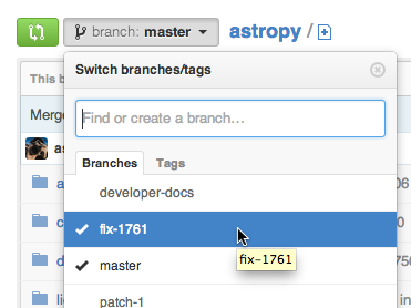 git branch fix-1761 astropy/master # branch based on latest from GitHub git checkout fix-1761 # switch to this branch git push --set-upstream origin fix-1761 # tell my github acct about it