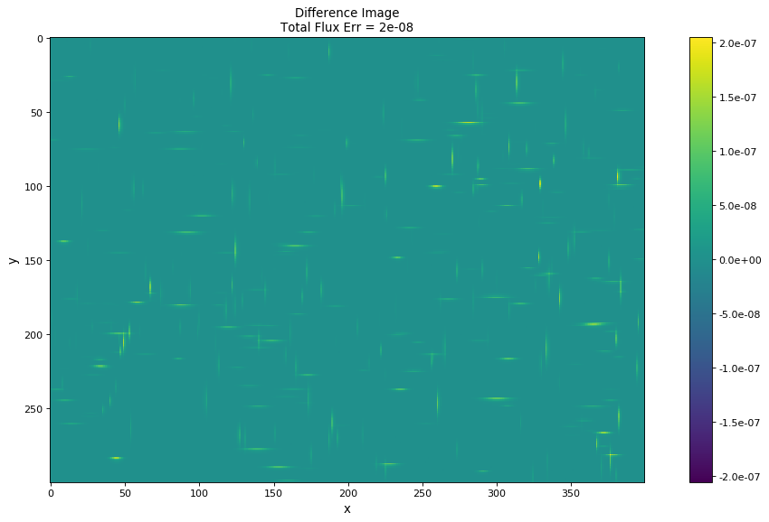 plt.title('Difference Image\nTotal Flux Err = {:.0e}'.format(