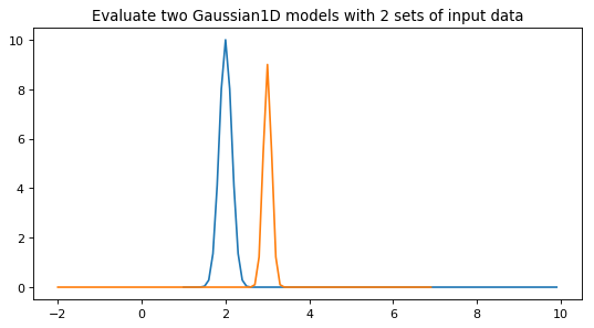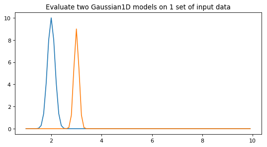 >>> x = np.arange(1, 10, .1) >>> g1 = Gaussian1D(amplitude=[10, 9], mean=[2, 3], ... stddev=[0.15, .1], n_models=2) >>> print(g1) Model: Gaussian1D Inputs: ('x',) Outputs: ('y',) Model set size: 2 Parameters: amplitude mean stddev --------- ---- ------ 10.0 2.0 0.15 9.0 3.0 0.1
