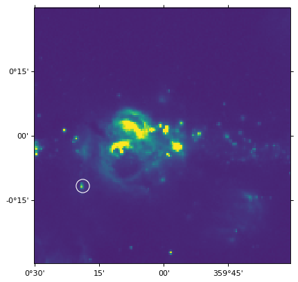 c = Circle((266.4, -29.1), 0.15, edgecolor='yellow', facecolor='none',