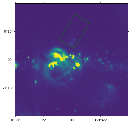 r = Rectangle((266.0, -28.9), 0.3, 0.15, edgecolor='green', facecolor='none',