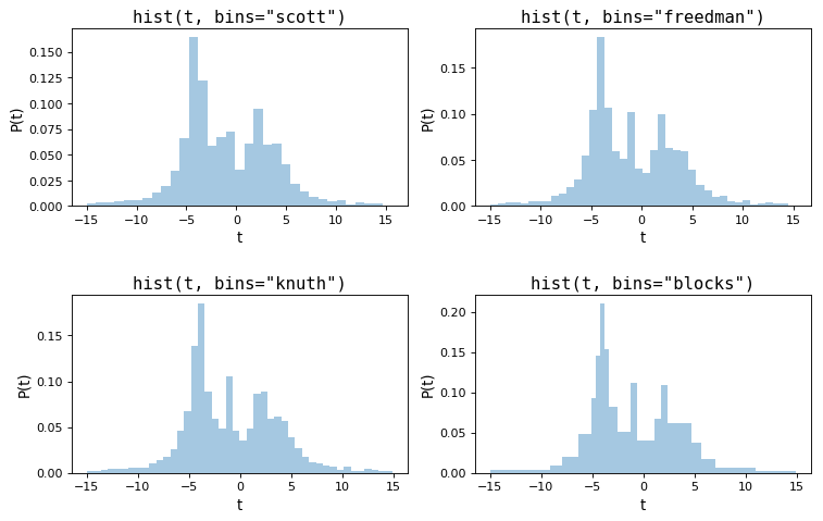 - New functions to automatically determine histogram bins, including the Bayesian blocks algorithm (see Algorithms for choosing histogram bins)